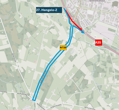 - Via afrit 27 Hengelo-Zuid, keren op N739 (zie blauwe lijn figuur 1).